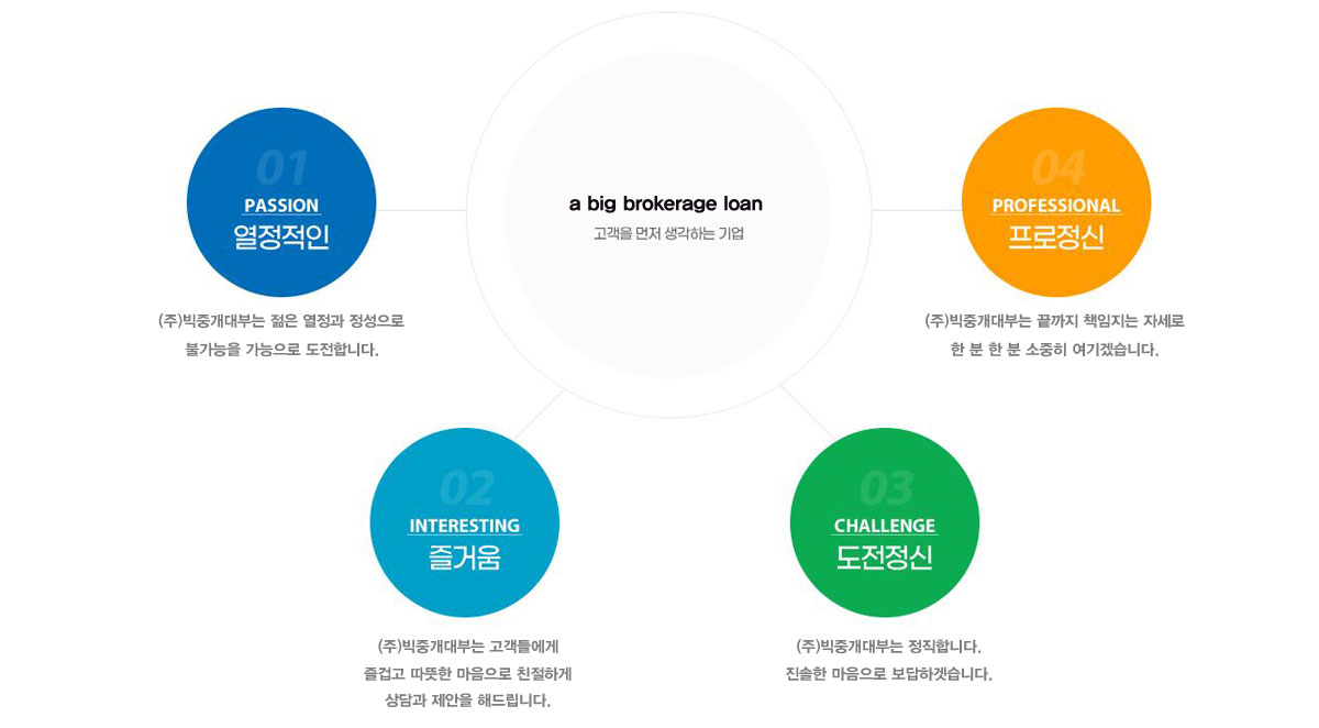 (주)빅중개대부는 고객과 진심을 나누고 신뢰를 쌓아갑니다.